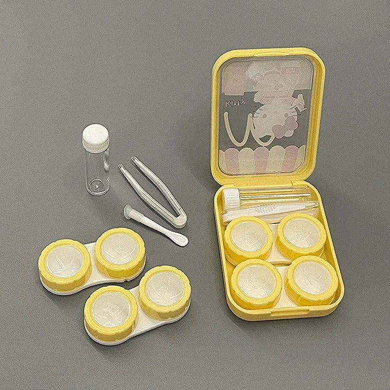 Keep your contact lenses safe and stylish with this adorable Sanrio Hello Kitty contact lens box set! Featuring a cute bow design, this square storage box includes two sets, making it the perfect companion for lens care and a sweet gift for Hello Kitty fans.